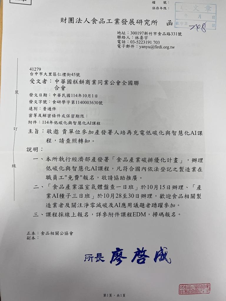 轉知~食品產業碳排優化計畫-免費課程(財團法人食品工業發展研究所)