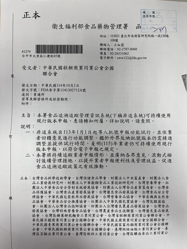 轉知~持續使用食品追溯追蹤管理資訊系統