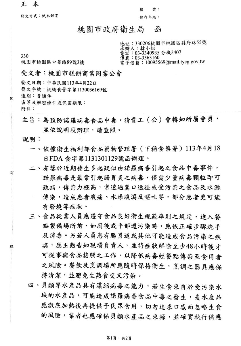 為預防諾羅病毒食品中毒,請各會員依據說明辦理。