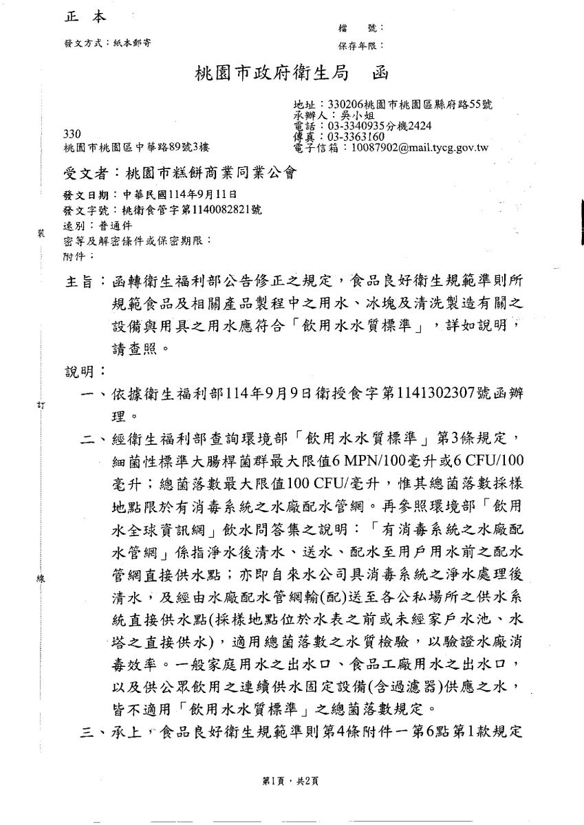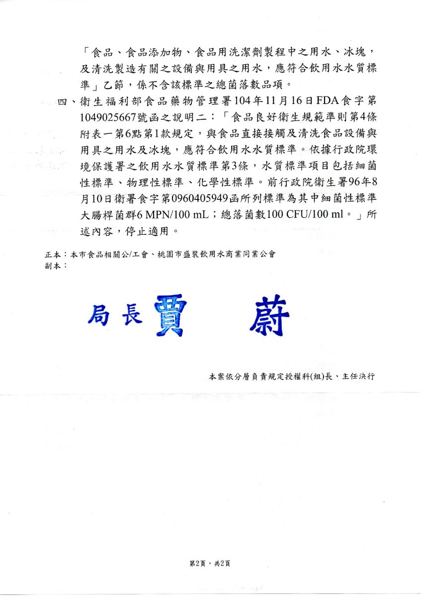 轉知食品及相關產品製程中之用水、冰塊及清洗製造有關之設備用具之用水應符合「飲用水水質標準」,詳如說明,請查照。