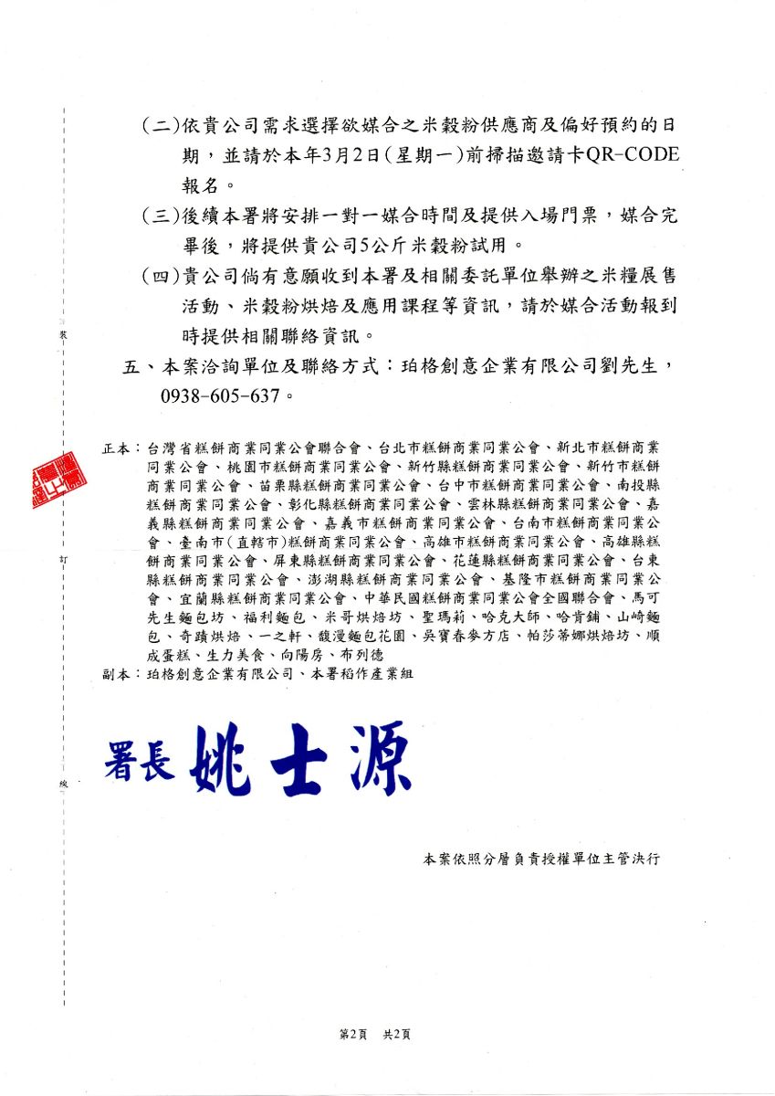 邀請卡、廠商簡介及米穀粉原料供應商資訊,網址連結: